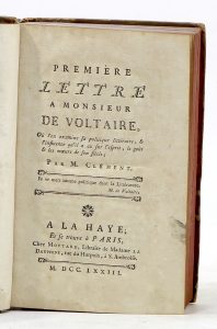 CLÉMENT (Jean Marie Bernard). Première [.— Cinquième] Lettre à Monsieur de Voltaire. La Haye, Paris, Moutard, 1773-1774 ; 5 titres reliés en un vol. in-8, basane marbrée, dos à nerfs orné de motifs dorés, pièce de titre rouge sombre,...