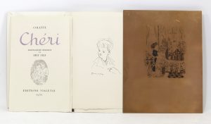 COLETTE. Chéri. Éditions Vialetay, 1952 ; pet. in-4 en ff., couverture imprimée rempliée, chemise et étui illustrés. 300/400 € Orné de 30 pointes-sèches originales d'Emilio Grau-Sala dans le texte et de 4 lithographies originales servant...