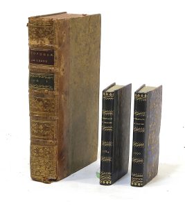 • Almanach de la ville et du diocèse de Troyes, capitale de la Champagne pour l’an de grâce M. DCC. LXXXX. Troyes, A. P. F. André, 1790 ; in-16, demi-basane vernie noire, dos lisse orné de motifs dorés, [rel. postérieure].
