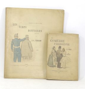 Rares exemplaires sur papier de Chine, imprimés pour l’éditeur FORAIN (Jean-Louis). La Comédie parisienne. Deux cent cinquante dessins. Paris, G. Charpentier & E. Fasquelle, 1892 ; in-8, broché, couverture illustrée en couleurs, non...