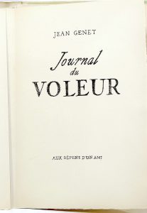 GENET (Jean). Journal du Voleur. S. l., aux dépens d’un ami, [Genève, Skira, 1949] ; fort vol. in-8 en ff., couverture imprimée rempliée, étui. 200/300 € Édition originale. L’un des 400 exemplaires numérotés sur papier vélin teinté...