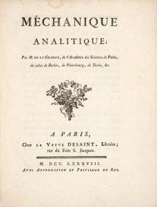 LAGRANGE (Joseph-Louis). Méchanique analitique. Paris, Veuve Desaint, 1788.