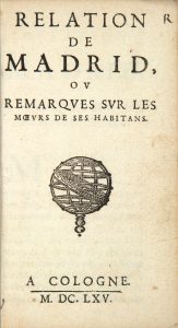 BONNECASE (Robert Alcide de). Relation de Madrid, ou remarques sur les Mœurs de ses Habitans. Cologne, s.n., 1665.