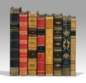 8 volumes in-8, demi-veau blond, dos lisse orné, pièces de titre et de tomaison fauve, tranches marbrées (Reliure de l’époque).