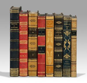 In-8, demi-veau violine, dos lisse orné de filets et d’une palette dorés, tranches mouchetées (Reliure de l’époque).