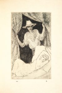 ►UN DES 6 EXEMPLAIRES SUR CHINE accompagnés de 3 SUITES DES ILLUSTRATIONS, à savoir : le premier état et l’état définitif en noir sur japon impérial, et l’état définitif en bleu sur chine.