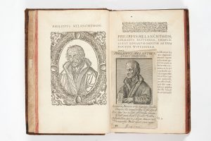 Coiffe accidentée, mouillures, truffé d'un portrait supplémentaire de Mélanchton, E.L. du Docteur Ardouin. Mouillures.