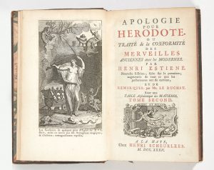 ESTIENNE, Henri (1528-1598) : Apologie pour Hérodote, ou traité de la conformité des merveilles anciennes avec les modernes. Par Henri Estienne, Nouvelle édition faite sur la première augmentée, de tout ce que les postérieures ont de curieux,...