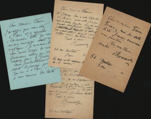 Correspondance de 7 missives autographes signées, soit 5 lettres et 2 cartes, adressées à Élie Faure. 1912-années 1930. 2 enveloppes conservées.– Saint-Germain-en-Laye, 13 novembre 1912.