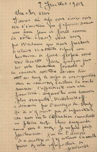 CARRIÈRE (Eugène). Lettre autographe signée à Élie Faure. [Paris], 2 juillet 1902. 2 pp. in-12, enveloppe.