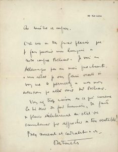 Je vais en Allemagne pour un mois prochainement [voyage subventionné par la S.D.N., en Suisse, en Allemagne et en Autriche]. À mon retour, je vous ferai visite, si vous me le permettez, et nous nous entendrons pour aller voir Mr Béliard.