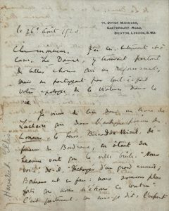 « Je vous remercie beaucoup pour le Napoléon, qui paraît si à propos, et je voudrais vous dire tout l'intérêt, l'admiration, – et même la sympathie – qu'il a suscité en moi.