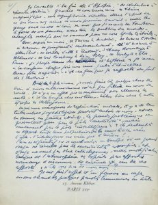 « Bien cher ami, trop de pensées se pressent en foule dans mon esprit. "Milliers d'oiseaux d'or, ô future vigueur" dit Rimbaud [citation approximative du « Bateau ivre »] – pour que je puisse leur ouvrir la cage, et cette lettre ne vous apportera de moi qu'un lointain bruit d'aile. Mais aussi, depuis que je fais du cinéma, les mots n'obéissent plus chez moi à la loi d'attraction qui les attirait sur le papier. Tout cela pour vous apprendre que je voudrais vous dire mille choses mais que mon style est en grève.