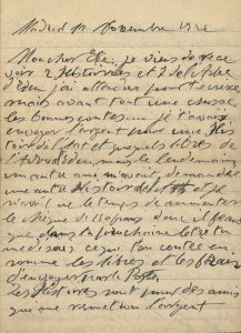 Ami Faure, tu n'auras pas vue Vollard le polisson, il ne m'a pas envoyée les photographies, et après je voudrais que tu le verrais pour s'il te dit quelque chosse qu'i puise me faire plaisir. Je ne l'é pas écris depuis que je suis sorti de Paris. L'Art décoratif me donne signe de vie de ton article que j'aurai eu tem de plaisir à le voir et les photographies. Enfin je pense à toi... Moi je suis ici avec des amis mais regrète énormément mes enfants et je pense beaucoup à mon travaille.