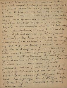 « 27/2 ». « ... Je travaille de nouveau dans un sens qui vous plaira. Je n'ose espérer d'avoir rendu une vraie au catholicisme et pourtant je crois avoir, oui, vraiment, découvert, j'ose employer ce mot parce que je sais que vous me comprendrez et ne rirez pas de mon orgueil –