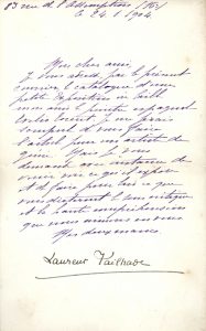 ▬ Paris, 21 juillet 1905. Demande de recommandation auprès du chirurgien Paul Reclus (oncle maternel d'Élie Faure) au sujet d'un problème de santé dont souffre sa femme.