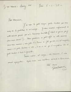 SEVERINI (Gino). Lettre autographe signée, en français. Paris, janvier 1935. 3/4 p. in-folio.
