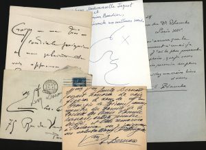 ▬ André DERAIN (s.d., sur le prêt d'un tableau pour une exposition), ▬ André DIGNIMONT (1938, lettre accompagnant l'envoi d'un « petit croquis »),
