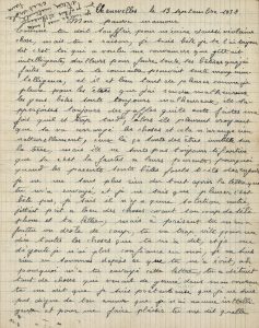 Tu me dis dans ta lettre que tu et calme, que tu n'a pas de peine, que tu a beaucoup pensé et que ce que tu m'écrit et réfléchi ; tu m'insulterait comme à Bruxelles avant que l'on se mette enssemble, je dirait "il a de la peine", mais nom, tu et même très polie, mais tu et mordant au possible.