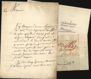 ▬ le compositeur Pierre-Alexandre MONSIGNY (lettre et pièce adressées au Marquis Du Mesnil d'après une mention manuscrite au verso de la note, lui donnant la liste des « opéras bouffons » du compositeur qui lui sont proposés à l'acquisition, xviiie siècle).