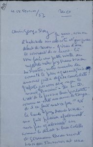 « Je suis, comme d'habitude, sur cette côte et jusqu'au début de mars. J'irai dans le courant de ce mois-là pour vous faire une petite visite au sujet de notre prix Renée Vivien... J'espère que vous avez reçu le recueil "Racines" de L. D.