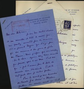 « ... Ce que vous me dites de l'article du "Mois" m'intéresse... Cela ne m'étonne pas parce qu'il y a dans l'entourage de Gertrude Stein des jalousies et des intrigues fantastic. Jusque ce point j'ai réussi de me bien échappé les complications de ce milieu. C'est une femme que j'aime et qui m'amuse, mais elle a un talent pour les intrigues qui est formidable. Je doute que cela viens de Faÿ [l'écrivain, Bernard Faÿ, alors professeur de civilisation américaine au Collège de France] mais je voudrais bien savoir. Il a toujours protesté son amitié profonde mais il est même plus féminine et intriguant que Gertrude Stein. Cela viens plutôt de un des petites gens sycophant avec qui elle aime s'entourer et que je ne vois jamais, parce que ces petites types montparnassien m'embête trop... » (Senlis, décembre 1934).