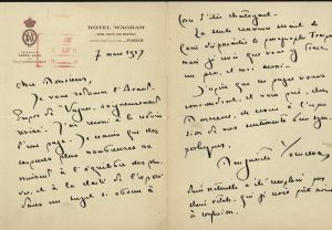 YOURCENAR (Marguerite). Lettre autographe signée. Paris, 7 mars 1937. 2 pp. in-12, en-tête imprimé de l'hôtel Wagram.
