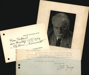 « Le Pr. Dr. C. G. Jung attend Madame Teillard lundi 17 janvier 1949 à 11 heures 1/2 du matin à Küsnacht » (1 p. in-12 oblong imprimée avec ajouts autographes).