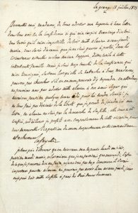 « ... Vous verrés qu'il m'est impossible de voir Mlle Alauzet avant jeudi matin. Vous savés d'avance que je ne suis guères à portée, dans les circonstances actuelles et sous aucun rapport, d'être utile à cette intéressante famille. Mais je suis trop touché de la confiance qui m'est témoignée, surtout lorsqu'elle se rattache à vous, Madame, pour ne pas chercher s'il est en mon pouvoir d'y répondre. En attendant, ne pourrions-nous adresser Melle Alauzet à nos amis Ségur qui auraient peut-être quelque bonne idée pour lui rendre service ?... »