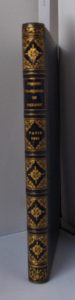 Reliure postérieure maroquin bleu, triple filet doré autour des plats, dos orné à nerfs, titre et adresse dorés au dos, dentelle intérieure, filet sur les coupes, tr. dorées. (C. Hardy).