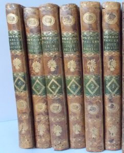SPALLANZANI ( Lazare) - Voyages dans les deux Siciles et dans quelques parties des Apennins. trad. par G. Toscan, Notes par Faujas de St-Fond – Paris, Maradan, An VIII – 6 volumes in-8 : 7 pl. dépl. –