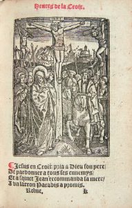 Les grands bois portent en guise de signature une croix de Lorraine et les initiales L.R. qui désigneraient le graveur et libraire Louis Royer dont on ne sait presque rien à part que sa première contribution à un livre d'heures date d'entre 1522 et 1542.