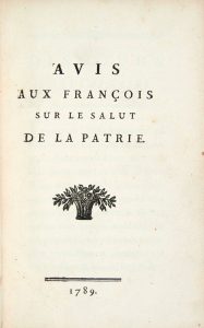 [PÉTION (JÉRÔME)] - Avis aux françois sur le salut de la patrie.S.l., 1789. In-8, 196 x 125 : (2 ff.), x, 262 pp. mal chiffrées 272.