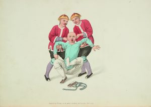 [MASON (GEORGE HENRY)] - The Punishments of China. - Les Punitions des chinois. Londres : imprimé pour Guillaume Miller par G. Bulmer et Co, 1801 [1822]. In-folio, 355 x 260 :(28 ff. dernier blanc), 22 planches.