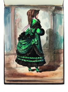 65 des 66 autres feuillets comprennent des dessins de mode féminine, dans le même style que l'autre album, datés d'entre le 14 janvier 1870 et le 25 décembre 1871.
