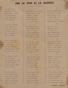 ANTONIOTTI, Françoise - Per la fine della guerra S.l., s.n., s.d. Poème de1 p. in-4° 1, 5 sizains.