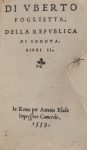 FOGLIETTA, Uberto - Della Republica di Genova libri due - Roma  : A Bl .ado,1559. In-8° de 76 p., plein vélin rigide moderne, dos lisse, titre manuscrit en long.