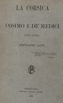 LIVI, Giovanni - La Corsica e Cosimo I de’ Medici, studio storico di… Firenze  ; Roma  : Fratelli Bencini 1885. XIII 4,13 p., errata  ; in-8°, pleine toile marron postérieure.