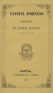 MATTEI, Paolo - Vannina d’ORNANO. Tragedia. Bastia  : Fabiani, 1850. - 74 p., et 1 ff. d’annotazione ; in 18 - °, broché, couv. Imprimée.