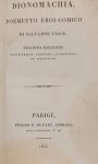 VIALE, Salvatore. - Dionomachia, poemetto eroi-comico… Seconda edizione notabilmente corretta, accresciuta, ed illustrata. 2e éd. - Paris  : P. Dufart, 1823. - 4 feuillets non chiffrés, 1 frontispice, 223 p., 10 feuillets non chiffrés  ; ...