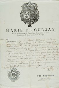 CURSAY, Marie de, Commandant en chef les troupes France dans l’Isle de Corse, Bastia le 17 mars 1749.