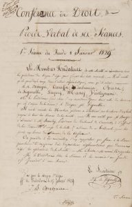 [MANUSCRIT] - Conférence de droit. 1er registre, [Bastia], 1830. Un volume in-folio, demi-vélin ivoire, dos lisse avec mention manuscrite Rigo, plats frottés. Volume composé de 284 pp., dont 93 remplies, de plusieurs écritures bien lisibles.
