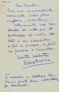 MAISTRALE [Dominique Antoine Versini, dit] (1872-1950). Poète corse. - L. a. s., le 29-11-34, 1 p. in-8°, pleine d’humour, à Caru maestru.