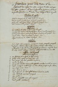 • Inventaire général de la mature et du gréement, des vergue, des voiles…ainsi que des effets contenus soit dans la chambre du capitaine, soit dans la grande chambre, à Ste Barbe, dans l’entrepont et le pont.