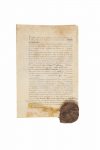 Grand cachet de cire, déchirure sans manque au bas de la page.