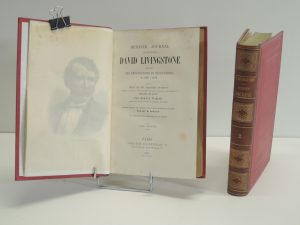 Dernier journal du docteur DAVID LIVINGSTONE de 1866 à 1873, Hachette 1876. 2 tomes. Complet des cartes et des illustrations. Reliure éditeur, tranches or, demi chag, titre or, dos orné.