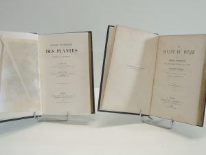 RAMBOSSON, Histoire et légendes des PLANTES utiles et curieuses, PARIS 1866. Belles illustrations en noir. Reliure éditeur en demi chag, titre or et dos orné. JOINT : FIGUIER, le savant au foyer, PARIS 1867. Même reliure et tranche or pour les 2...
