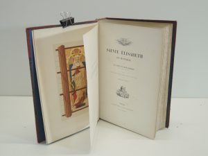 SAINTE ELISABETH de HONGRIE par le COMTE DE MONTALEMBERT, TOURS 1889. Nombreuses illustrations. Demi maroquin à coins, tête or, dos orné et titre or. Menus défauts.