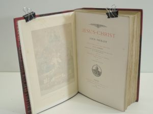 JESUS-CHRIST par LOUIS VEUILLOT avec UNE ETUDE SUR L'ART CHRETIEN par CARTIER. PARIS 1876. 180 gravures exécutées par HUYOT et 16 chromolithographies. Demi chag à coins, tête et titre or.