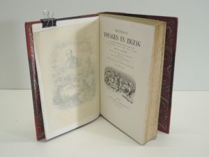 TOPFFER, NOUVEAUX VOYAGES EN ZIGZAG, PARIS, GARNIER, 1886. Illustré d'après les dessins de TOPFFER. Demi maroquin à coins, tête or, fleurons et titre or.